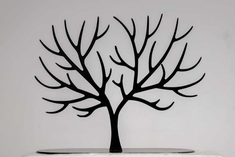 Černý kovový stojan na šperky ve tvaru stromu